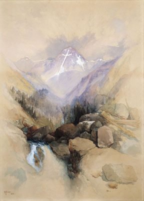 Without doubt, the curators formulated a compelling exhibition on chromolithography and the American West, yet it would have disappointed critics seeking strongly historicized readings through the lens of the problematic past of the United States. The wall text for one print, The Mountain of the Holy Cross, Colorado (1876), remarked that a snowfield evocative of the Christian sign of salvation had encouraged visions of Manifest Destiny. Left unstated in the gallery, however, was the question of who was living on the land before the arrival of the white creators and consumers of this imagery. By sidestepping this matter, the show risked disapproval of the sort offered by Ken Johnson in his review of “The American West in Bronze, 1850–1925” organized by the Metropolitan Museum of Art in collaboration with the Denver Art Museum. The New York Times critic published an unusually truculent review (December 20, 2013) on the ostensible grounds that the exhibition had belittled “a real-world history of appalling violence and evil” behind the bronze figures of Native Americans, mountain men, and cowboys. With these words, Johnson astutely observed that the bronze exhibition did not have the primary aim of condemning crimes against humanity; however, his judgment adhered to the commonplace in which easterners conveniently overlook historical atrocities in their own region and readily deliver devastating if facile judgments about developments in the American West.