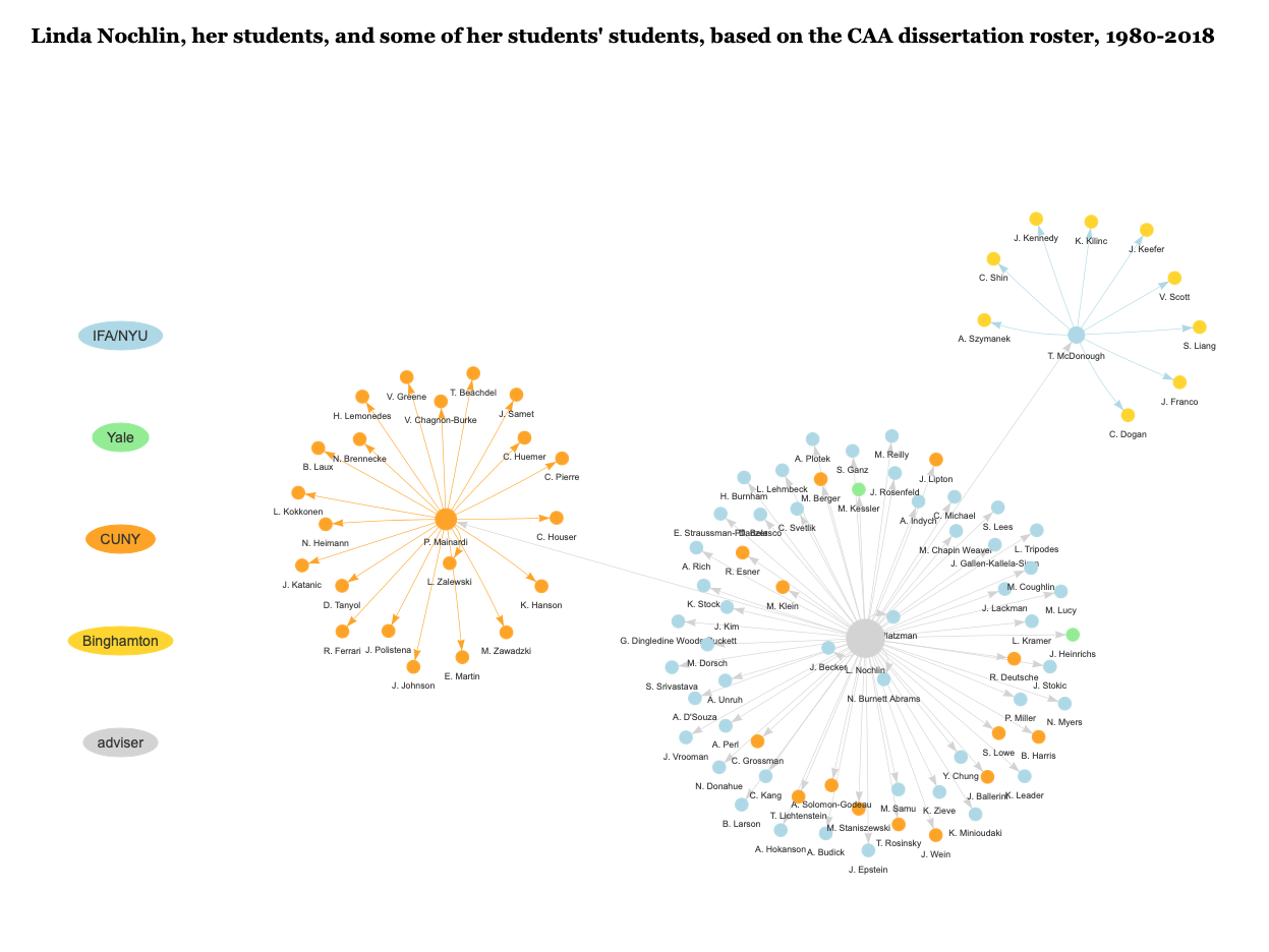 Fig. 7 Linda Nochlin and Her Students, Based on the CAA Dissertation Roster, 1980–2018, and the PSU Data Set (created by Nancy Um with visNetwork; click for interactive version, where you can scroll to zoom in or out/click and drag to rearrange the nodes)
